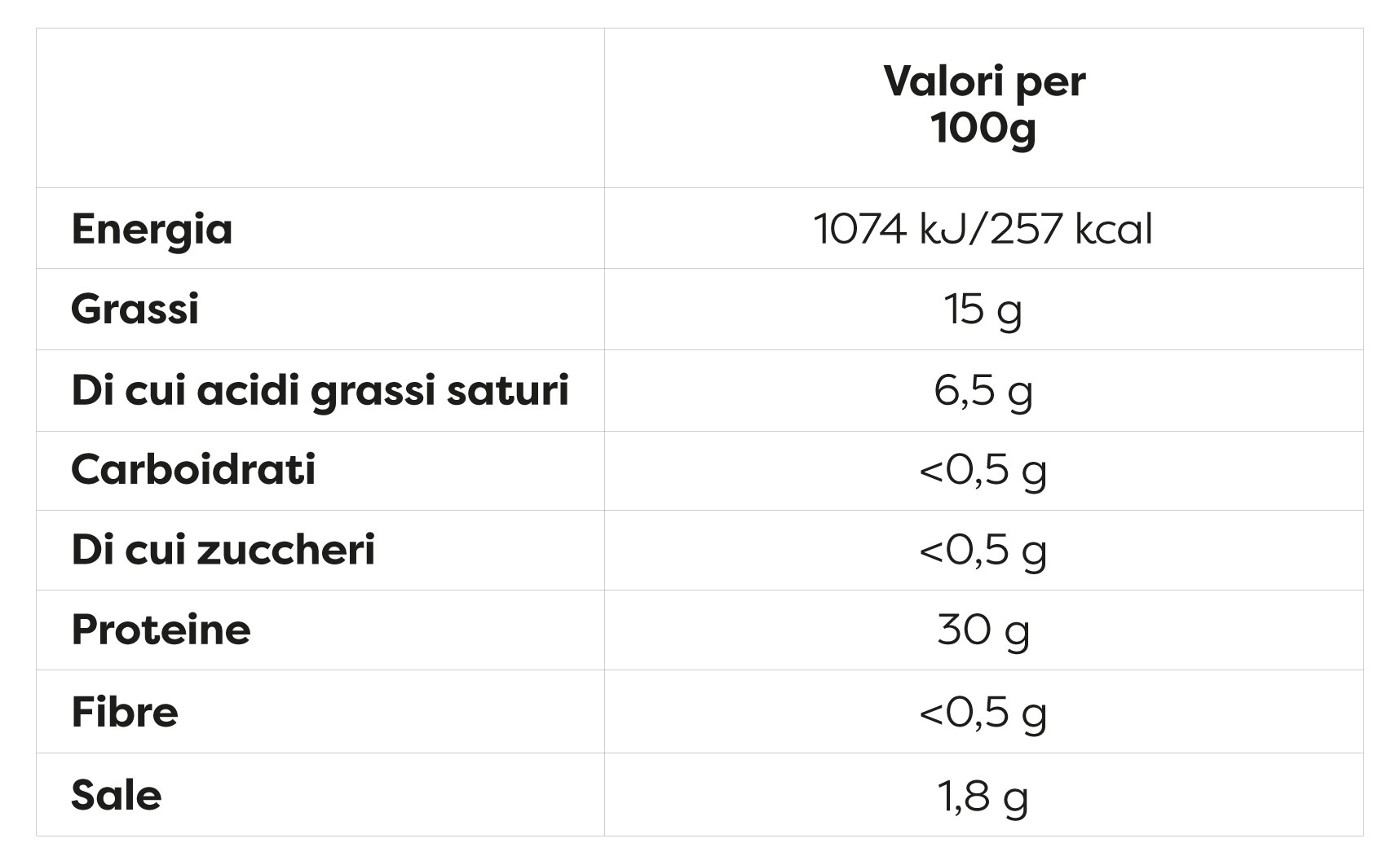 Prodotto confezionato sottovuoto, non forare la confezione. Conservare a temperatura da 0°C a +4°C.