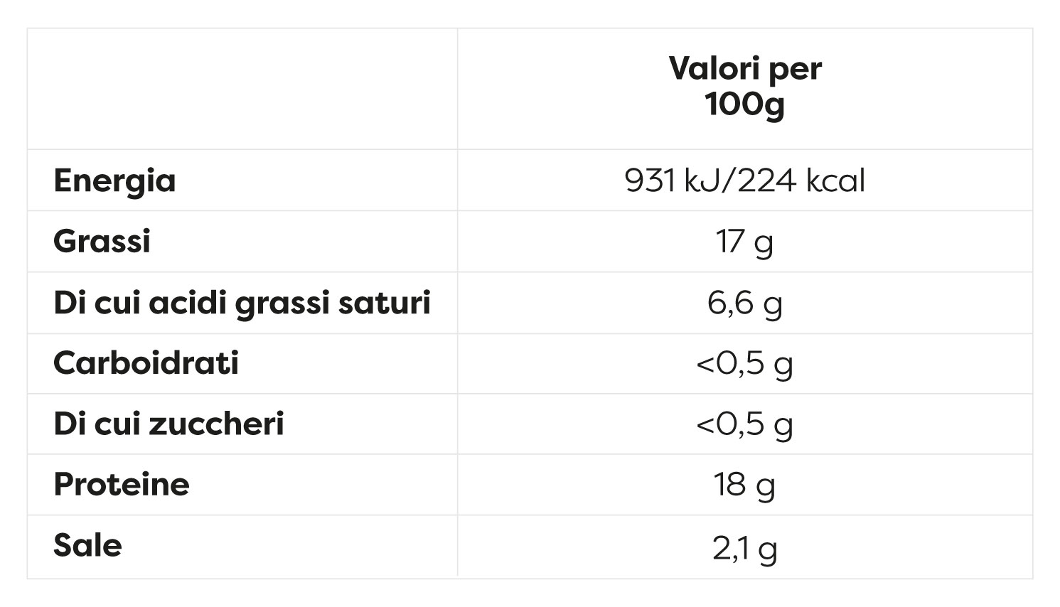 Prodotto confezionato sottovuoto, non forare la confezione. Conservare a temperatura da 0°C a +4°C.