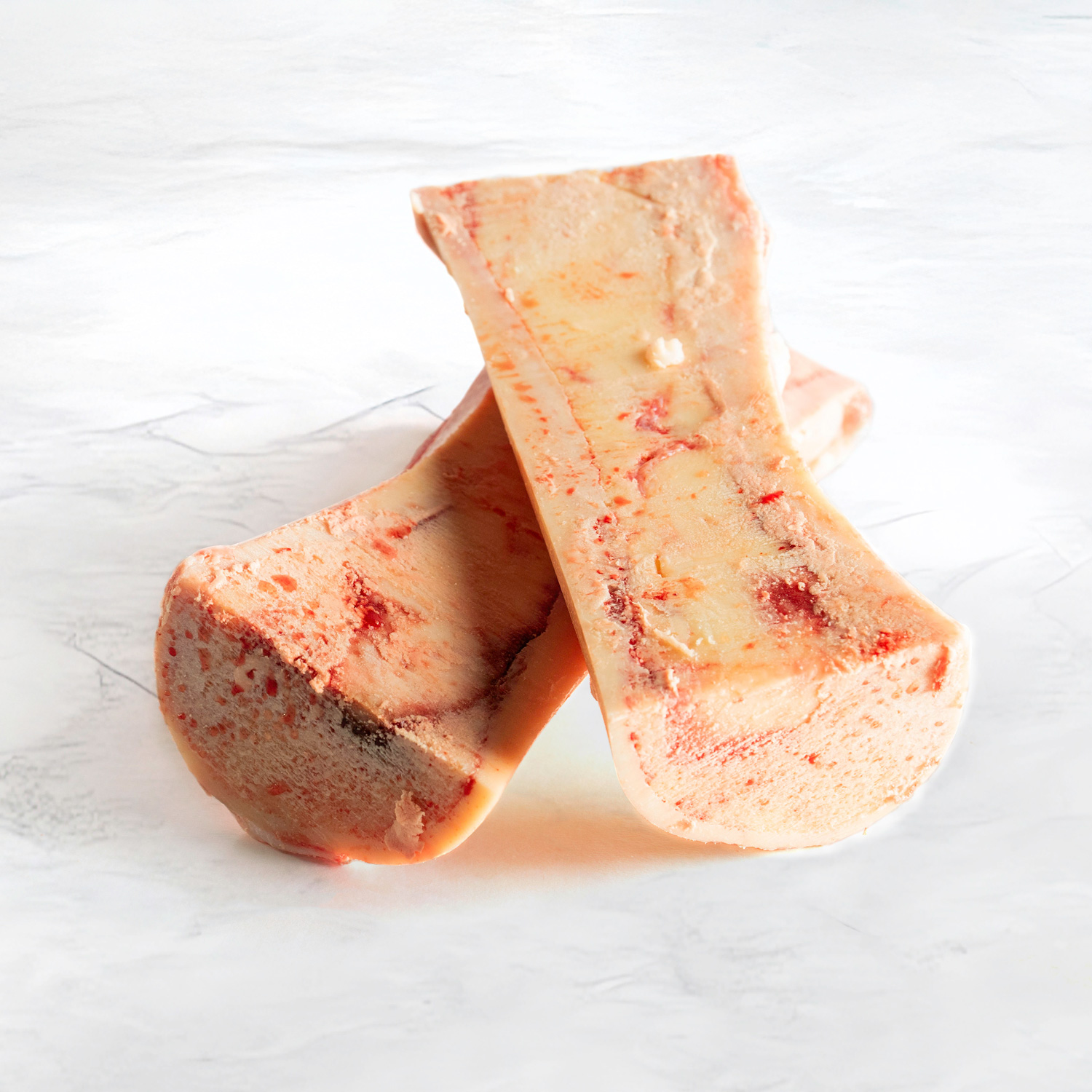 Il femore tagliato è un osso ricco di midollo, collagene e nutrienti. Durante la cottura il midollo si scioglie ed è ideale per la preparazione di brodi, fondi di cottura e ossobuco.