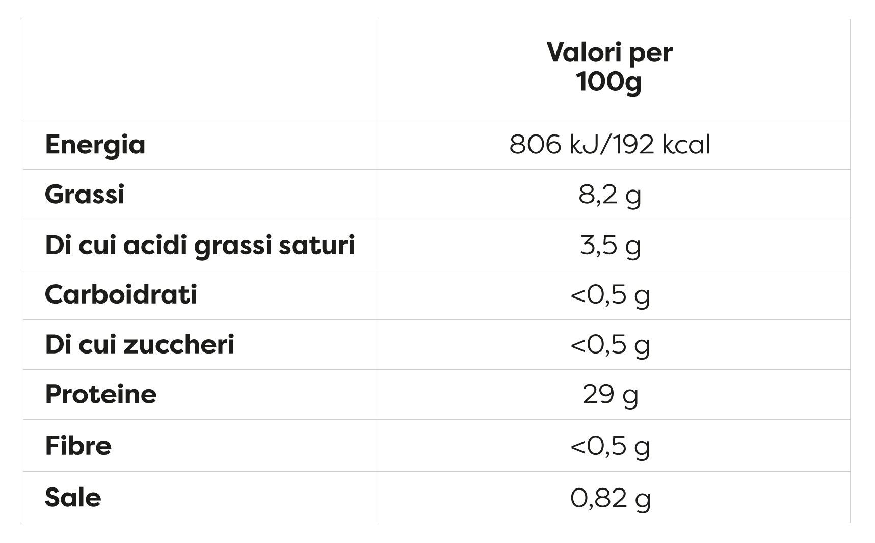 Prodotto confezionato sottovuoto, non forare la confezione. Conservare a temperatura da 0°C a +4°C.