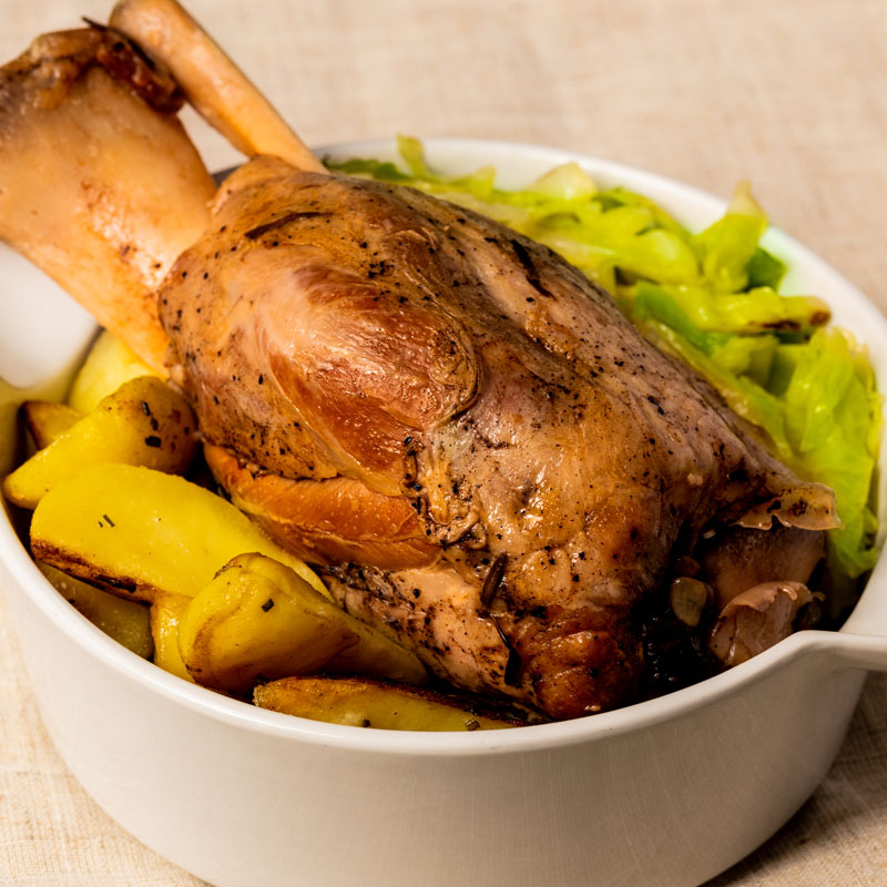 Stinco di suino cotto con erbe aromatiche